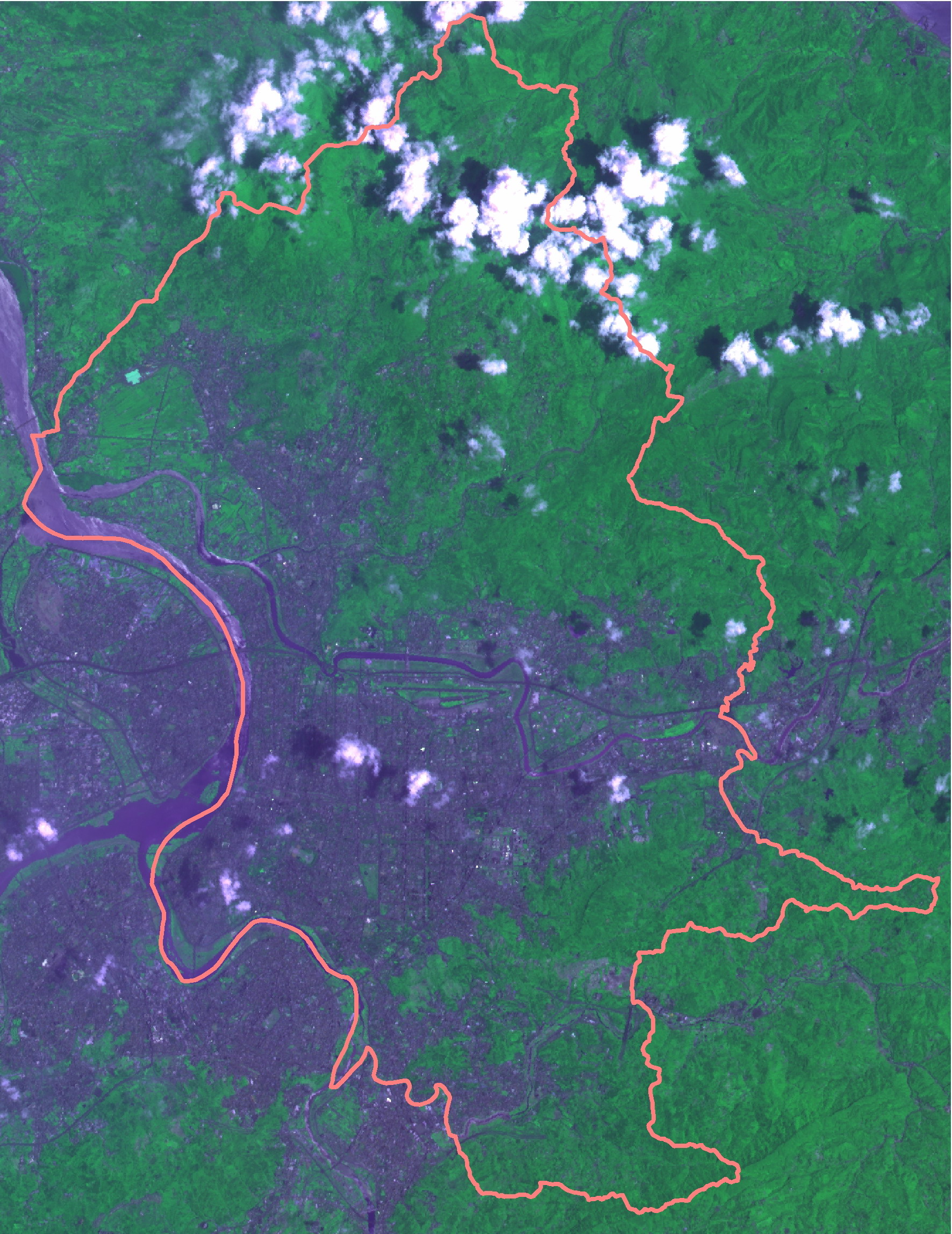 I0010826 西元 2002 年衛星影像照片(檔案格式:JPG) SPOT-4 (波段 4) Rows:1425,Cols:1100,RES:20